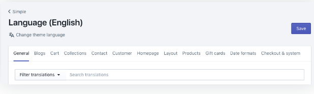 语言编辑器允许您更改显示在Shopify商店中的字词和句子,包括其他语言的文本。