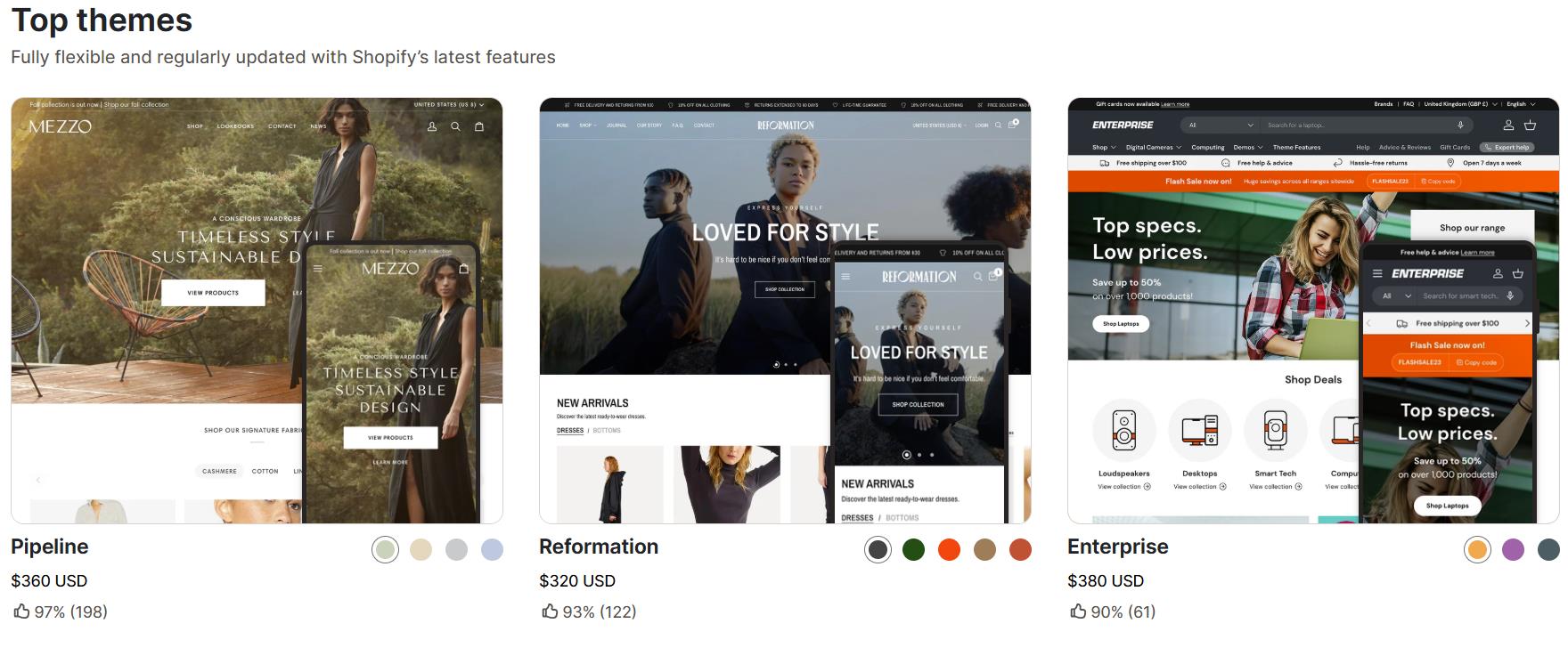● 访问 Shopify 模板商店并选择一个付费模板。