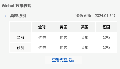 卖家中心直接展示全球,美国,英国,德国等卖家等级状态,无需切换查看。