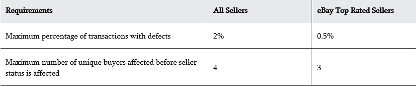 eBay根据卖家交易数量决定评估时间长度,以400项交易量为界,分别评估过去三个月或十二个月的表现。卖家评价考核内容包括:不良交易率、未解决纠纷、延迟运送率、及时上传有效单号比率。