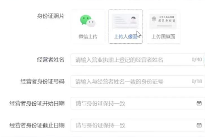 而且我们上传的这个身份信息必须是要和营业执照的经营者本人相匹配,上传完毕,我们点击下一步。