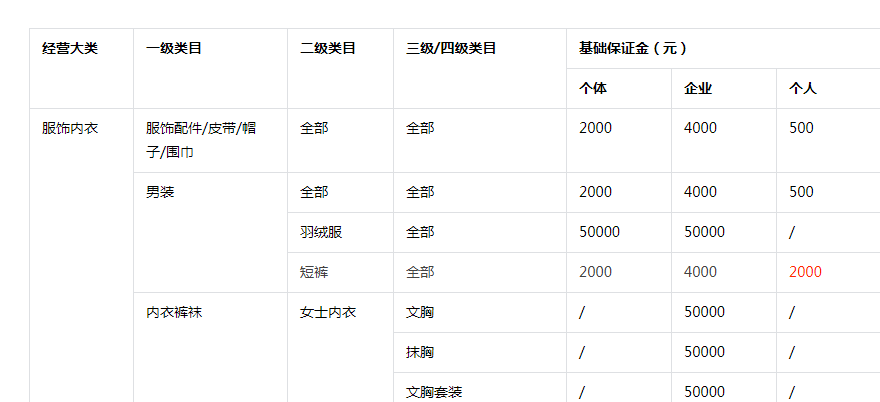 最新的抖音小店各类目保证金标准可以参照下方表格: