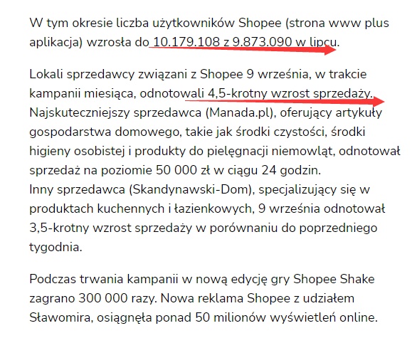 据悉,9月9日,Shopee卖家在本月活动中的销售额提升了4.5倍。其中,一家居用品的卖家(Manada.pl),在24小时内实现了50,000兹罗提的销售额。另一家销售厨房和浴室产品卖家(Scandinavian-Dom)的销售额与前一周相比也增长了3.5倍。