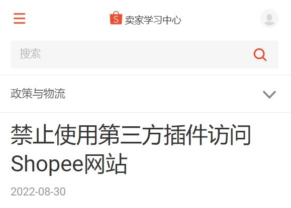 日前,Shopee发布通知称,禁止卖家使用第三方插件访问Shopee网站。