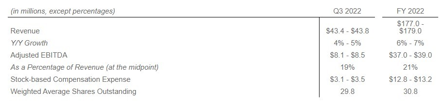 另外,该公司预计2022年第三季度收入将达到4340万美元-4380万美元;预计2022财年收入将达1.77亿美元-1.79亿美元。