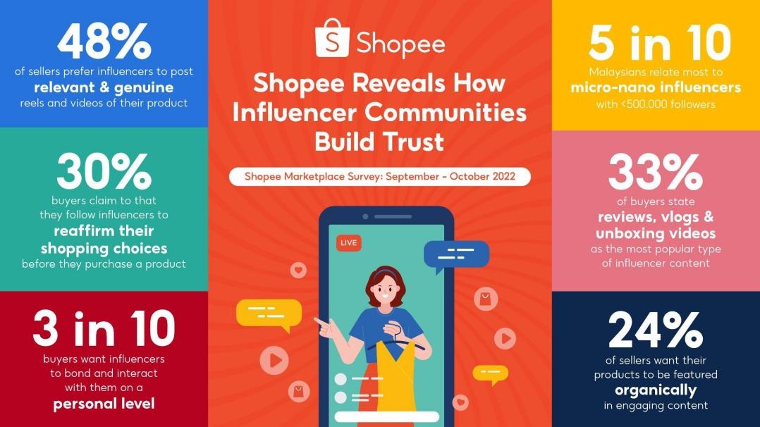 之前,Shopee马来西亚站的一份调查显示,近三分之一的人在购买某种产品之前会跟着网红博主确认自己的购物选择,超过20%的人会经常关注网红博主以追上潮流,仅有7%的人选择关注网红博主只是因为他们很受欢迎。
