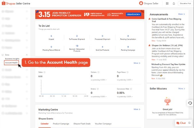 Shopee对计分豁免申请流程进行了简化:2022年9月19日起,没有经理的卖家可以自行通过卖家中心或Shopee App申请计分豁免。