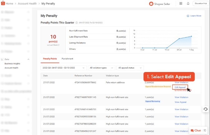 同时,卖家可以在卖家中心或Shopee APP查看实时申请进度。申请期限上,卖家仅能在计分产生后的14天内申诉(包括假日及周末)否则申诉会被驳回;卖家需在7天内提交额外文件否则申诉会被驳回。