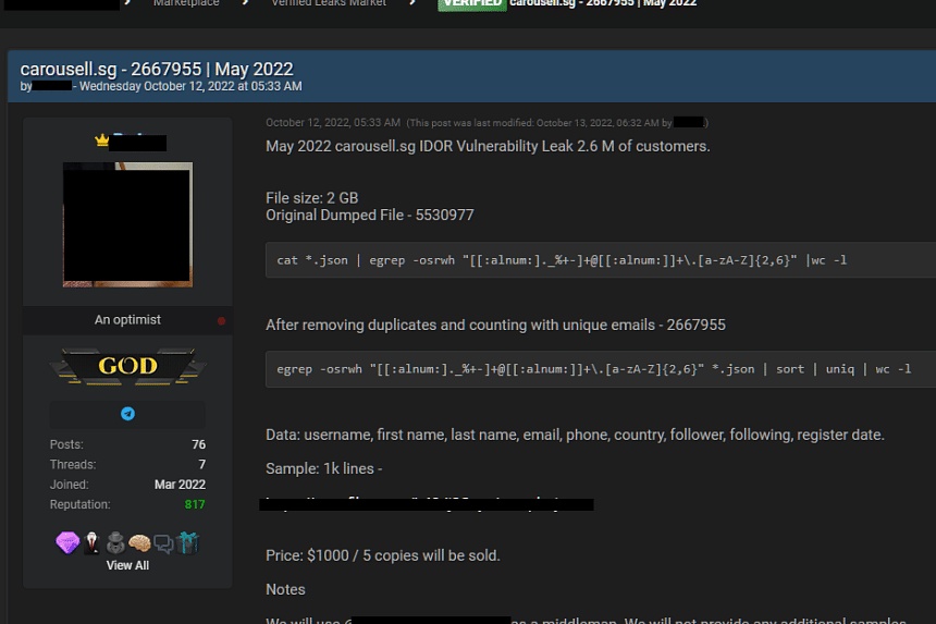 据悉,此次泄露的数据包含260万个账户的信息,售价为1000美元,目前已售出两份。Carousell称,有195万用户帐户受到影响。