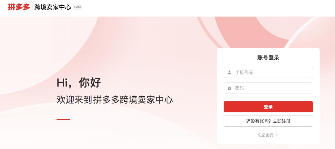 请用电脑打开https://kuajing.pinduoduo.com/login/register,填写手机号,设置账号密码;