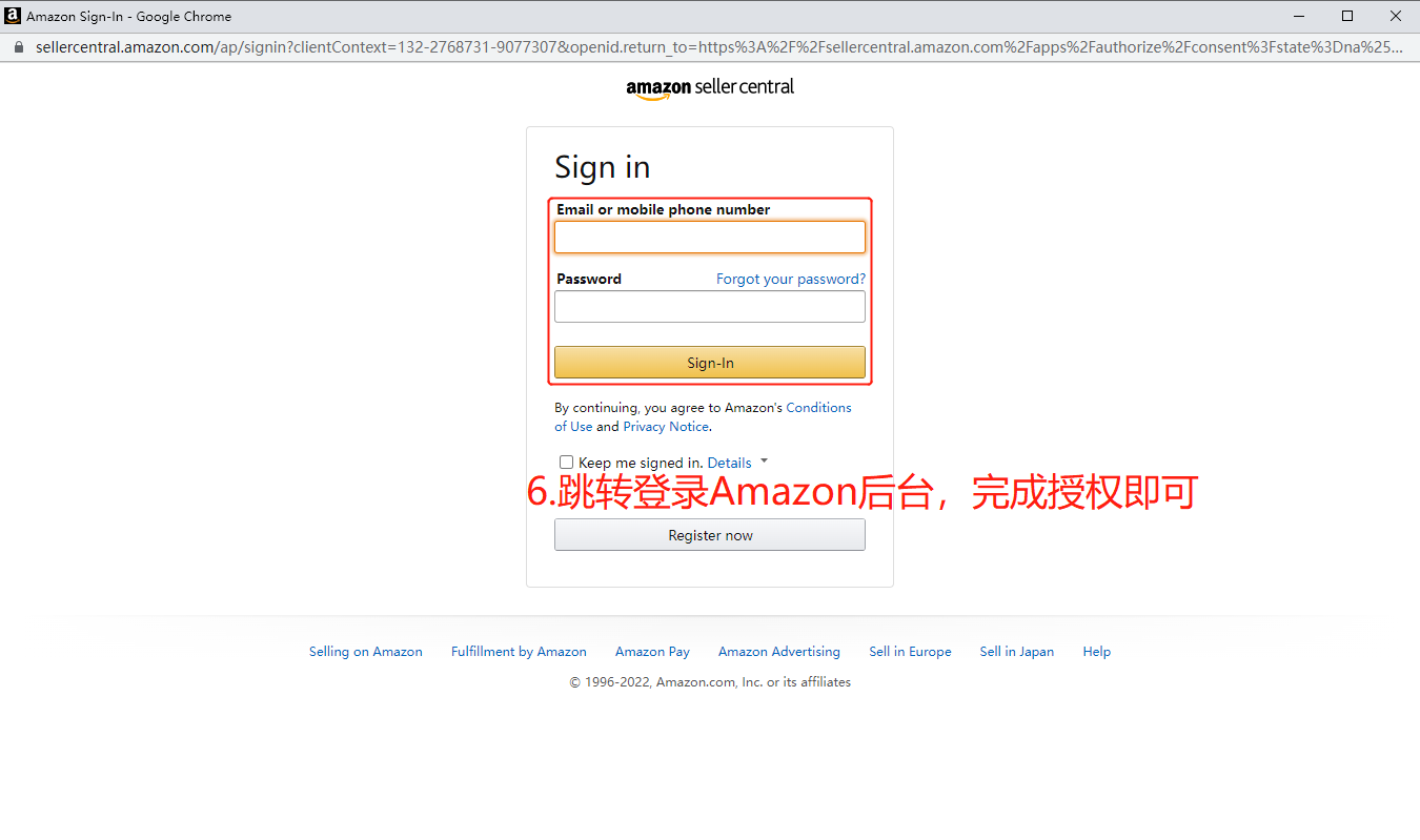 第二步:跳转登录Amazon后台账号,接受协议,完成授权即可
