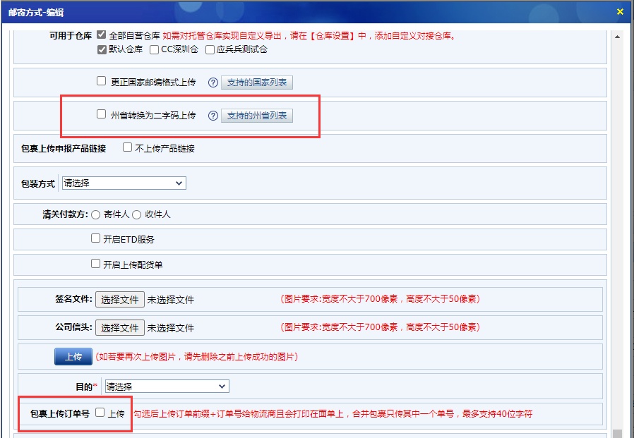 基础设置>仓库设置:尚为供应链海外仓邮寄方式编辑增加“州省转换为二字码”选项;
