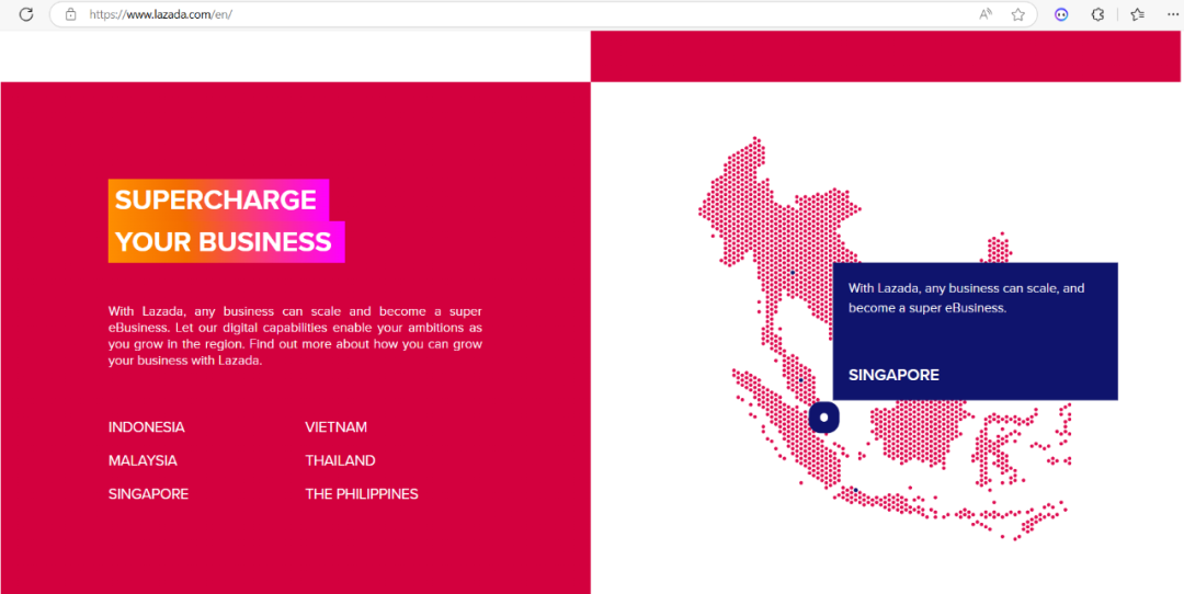 Lazada是于 2012 年成立的东南亚电子商务平台,在印度尼西亚、马来西亚、菲律宾、新加坡、泰国和越南等六个国家/地区开展业务,并于2016年成为阿里巴巴的区域旗舰,Lazada拥有先进的技术、物流及支付能力,推动着东南亚电商生态的发展。目前,平台上拥有最多样化的品牌和商家,为消费者提供了丰富的商品选择。