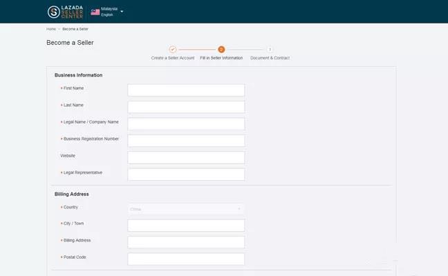 2)针对增值税GST现在Lazada在平台是针对东南亚6国的,而且每个国家的增值税有所不同,分别就是:马来西亚–6%,还有新加坡–7%,泰国–7%,印度尼西亚–10%,害有菲律宾–12%,越南–10%的。3)账务的处理费目前Lazada开店费用中账务处理费,这个是固定的每笔订单金额总额的2%了。4)运费和其他费用目前Lazada平台是有推出LGS全球配送方案,也能由卖家自行运输。所以在运费成本计算时是根据商家发货所选方式不同而定的。这个除了运费外,其他的费用还有包括:各国关税、payoneer手续费等方面。 四、Lazada的注册流程接下来是之前的注册流程,现在的话略微是有所变动,大部分也是利用招商经理直接开店,不能自己开店的。目前Lazada平台的注册流程比较简单,这个具体步骤如下所示的:1、先去搜索Lazada官网,选择注册进入注册页面之中。